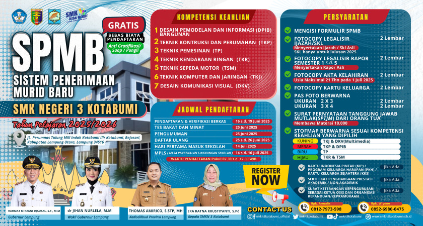 SPMB SMK Negeri 3 Kotabumi Tahun Pelajaran 2025/2026 akan Segera Dibuka!